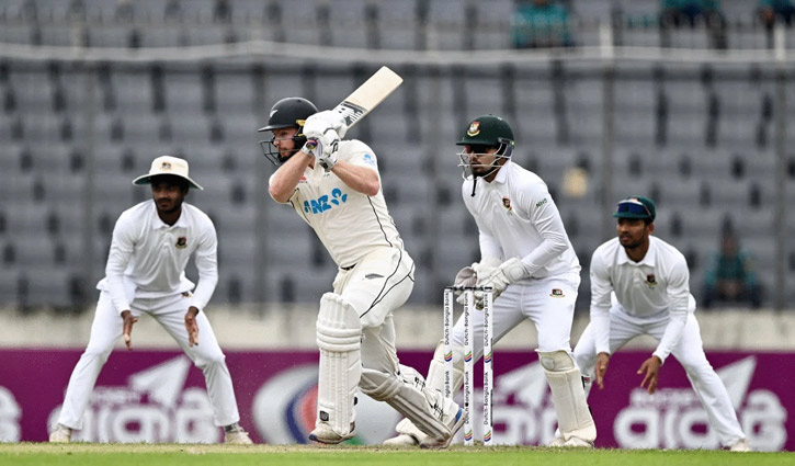বৃষ্টিতে উইকেট দীর্ঘসময় ঢেকে রাখা ছিল কাভারে। খেলা শুরুর পর তাই উইকেটের আচরণ ভয়ঙ্কর হবে বলেই ধারণা করা হয়েছিল। কিন্তু উল্টো ব্যাট হাতে ভয়ঙ্কর হয়ে উঠলেন গ্লেন ফিলিপস। পাল্টা আক্রমণে বাংলাদেশকে হতচকিত করে চার-ছক্কার ঝড় তুলে তিনি লিড এনে দিলেন নিউ জিল্যান্ডকে। মিরপুর টেস্টের তৃতীয় দিনে প্রথম ইনিংসে ৮ রানের লিড নিয়েছে নিউ জিল্যান্ড। শের-ই-বাংলা স্টেডিয়ামে শুক্রবার ৫ উইকেটে ৫৫ রান নিয়ে খেলতে নেমে কিউইরা প্রথম ইনিংসে অলআউট হয় ১৮০ রানে। দলকে এগিয়ে রাখার মূল কারিগর ফিলিপস। বিপর্যয়ের মধ্যে ৯ চার ও ৪ ছক্কায় ৭২ বলে ৮৭ রানের ইনিংস খেলেন তিনি। তিনটি করে উইকেট নেন মেহেদী হাসান মিরাজ ও তাইজুল ইসলাম। চার ওভার বোলিংয়ে দুই উইকেট শিকার করেন নাঈম হাসান। শেষ দিকে দুটি গুরুত্বপূর্ণ উইকেট নেন পেসার শরিফুল ইসলাম।