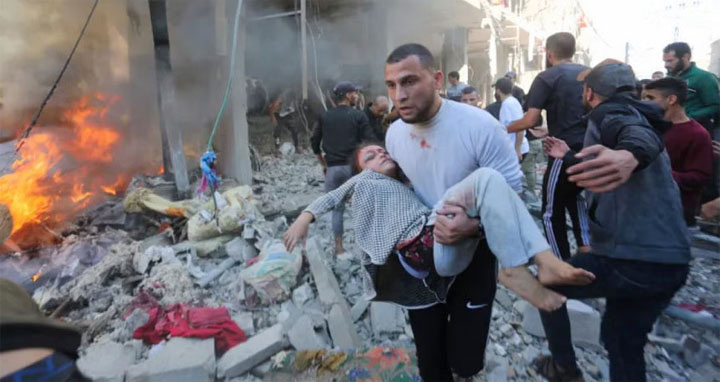 ফিলিস্তিনের অবরুদ্ধ গাজা উপত্যকায় ইসরায়েলি বর্বর হামলায় গত ২৪ ঘন্টায় আরও প্রায় ৩০০ জন নিহত হয়েছেন। দুইমাসের বেশি সময় ধরে চলা এ হামলায় ভূখন্ডটিতে হতাহতের সংখ্যা ৬৮ হাজার দাঁড়িয়েছে। যার মধ্যে নিহতের সংখ্যা ১৮ হাজার ছাড়িয়ে গেছে। সোমবার (১১ ডিসেম্বর) এক প্রতিবেদনে এই তথ্য জানিয়েছে সংবাদমাধ্যম আল জাজিরা। প্রতিবেদনে বলা হয়েছে, গাজায় গেলো ২৪ ঘণ্টায় ভয়াবহ লড়াইয়ে প্রায় ৩০০ ফিলিস্তিনি নিহত হয়েছেন। এছাড়া ফিলিস্তিনি সশস্ত্র গোষ্ঠী হামাস এবং ইসরায়েলের প্রধানমন্ত্রী বেঞ্জামিন নেতানিয়াহু একে অপরের প্রতি হুমকি দিয়েছেন। গত রোববার ফিলিস্তিনের অবরুদ্ধ এই ভূখ-জুড়ে ইসরায়েলি অভিযান অব্যাহত ছিল।