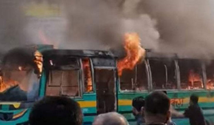 রাজধানীর ধানমন্ডিতে বাসে আগুন