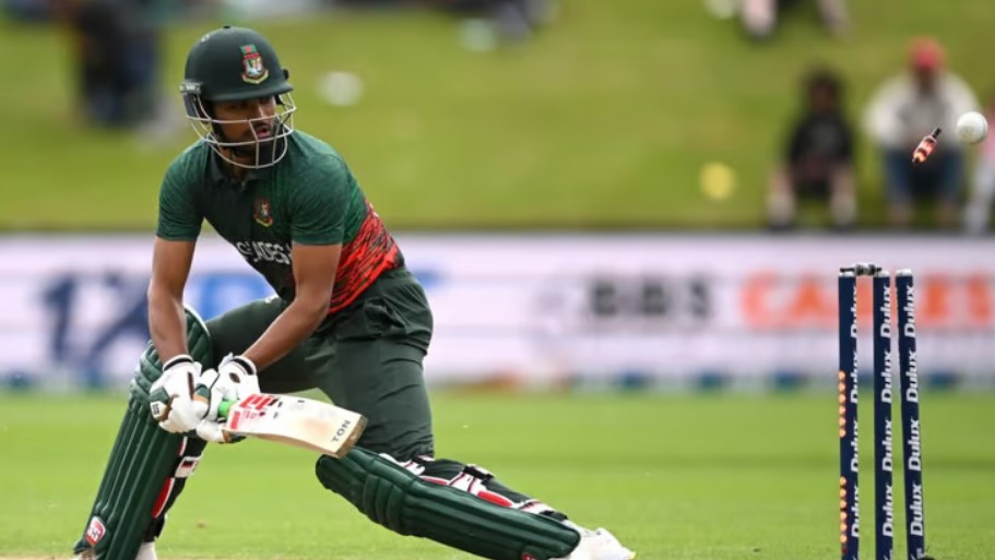 ইয়াং-ল্যাথামের ঝড়ের সঙ্গে মার্ক চ্যাপম্যানের ক্যামিও মিলিয়ে ১০ ওভারে আসে ১২৮ রান। লক্ষ্যটা বাংলাদেশের নাগালের বাইরে চলে যায় মূলত সেখানেই। বিশাল রান তাড়ার শুরুতেই ধাক্কা খায় বাংলাদেশ। খরুচে বোলিং ও ফিল্ডিংয়ে ক্যাচ ছাড়ার পর ব্যাটিংয়েও শূন্য রানে আউট হয়ে ফেরার ম্যাচে ব্যর্থতার ষোলোকলা পূর্ণ করেন সৌম্য সরকার। আউট হন চেনা ভঙ্গিতেই, জায়গায় দাঁড়িয়ে বাইরের বলে খোঁচা দিয়ে। দলে ফেরা আরেক ওপেনার এনামুল হক বল আকাশে তুলে জীবন পান ৮ রানে। এরপর দারুণ কিছু শট খেলে রান বাড়াতে থাকেন তিনি। কিন্তু আরেকপ্রান্তে আত্মহত্যার পথ বেছে নেন নাজমুল হোসেন শান্ত। লেগ স্পিনার ইশ সোধির প্রথম ওভারেই রিভার্স সুইপ খেলতে গিয়ে উইকেট হারান বাংলাদেশ অধিনায়ক।