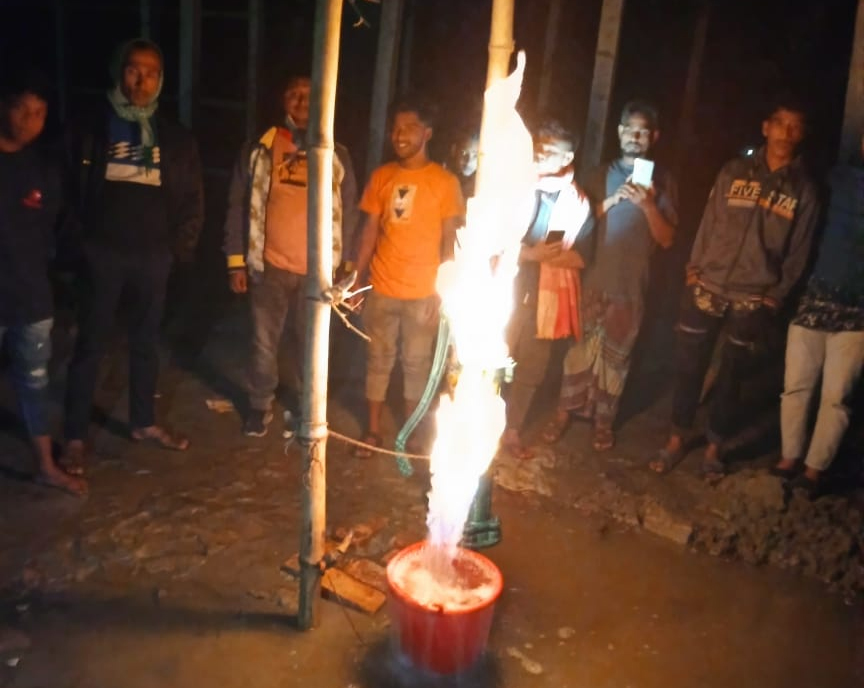 লোকজন নলকূপের গ্যাসে আগুন ধরিয়ে দিলে অনর্গল জ্বলতে থাকে।