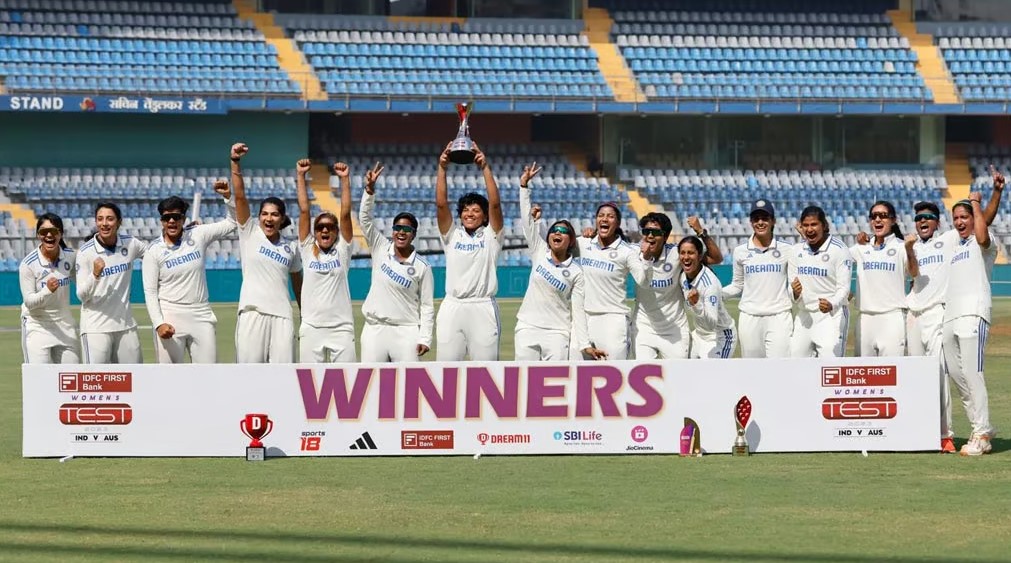 দিনের শুরুতে ম্যাচে ছিল অনেকটাই ভারসাম্য। কিন্তু পরে কয়েক ওভারের মধ্যেই ভোজবাজির মতো বদলে গেল সব। স্নেহ রানা ও রাজেশ্বরী গায়কোয়াড়ের স্পিনে অস্ট্রেলিয়া গুটিয়ে গেল দ্রুতই। ছোট রান তাড়ায় জিতে ভারত পেল ঐতিহাসিক এক জয়ের দেখা। মুম্বাই টেস্টে টার্নিং ও নিচু বাউন্সের উইকেটে স্পিনারদের জবাব পায়নি অস্ট্রেলিয়া। ভারত জিতে যায় ৮ উইকেটে। নারী টেস্টে দুই দলের লড়াই শুরু ১৯৭৭ সালের জানুয়ারিতে। সেই থেকে এই ম্যাচের আগ পর্যন্ত ১০ টেস্টের ৬টি ড্র হয়েছিল, ৪টিতে জিতেছিল অস্ট্রেলিয়া। ভারত জয়ের স্বাদ পেল এই প্রথম। ওয়াংখেড়ে স্টেডিয়ামে ম্যাচের প্রথম ইনিংসেই ১৮৭ রানের লিড নিয়ে বড় ব্যবধান গড়ে ফেলে ভারত। দ্বিতীয় ইনিংসে ব্যাট হাতে বেশ লড়াই করে অস্ট্রেলিয়া। তৃতীয় দিনে একপর্যায়ে তাদের রান ছিল ৩ উইকেটে ২০৬। কিন্তু শেষ সেশনে ভারতীয় অধিনায়ক হারমানপ্রিত কৌর গুরুত্বপূর্ণ দুটি ব্রেক থ্রু এনে দেন দলকে।