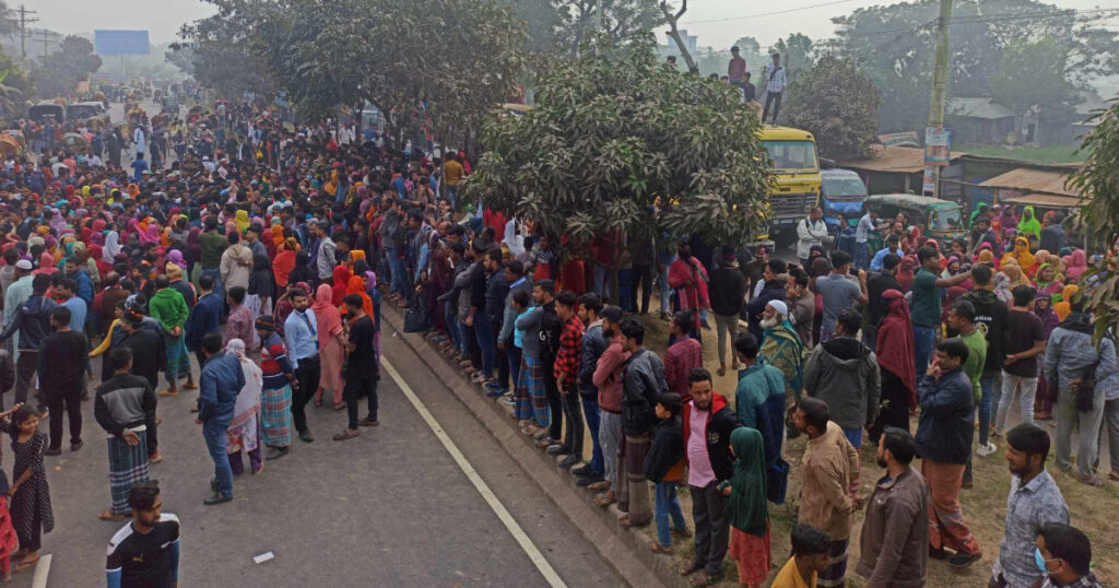 পরে কর্তৃপক্ষের আশ্বাসে সড়ক থেকে সরে যায় শ্রমিকরা।