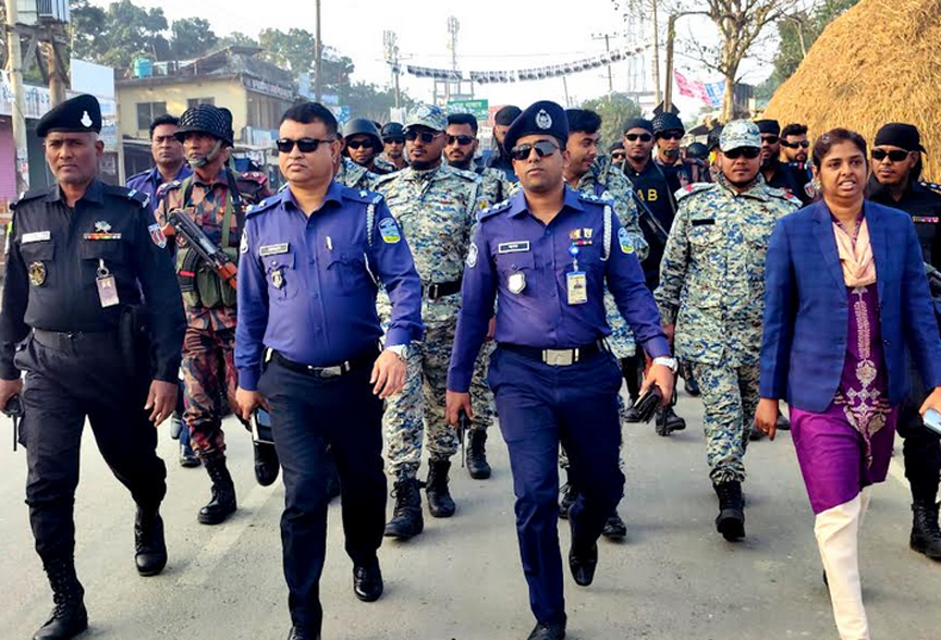 হালুয়াঘাটে উপজেলা প্রশাসন ও আইনশৃঙ্খলার বাহিনীর যৌথ টহল