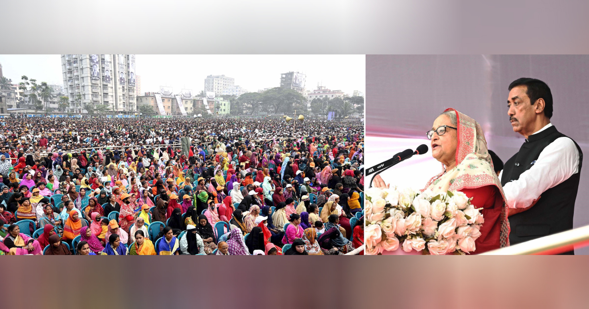 গণতন্ত্রের স্বার্থে রবিবার ভোটকেন্দ্রে যাবেন: নারায়ণগঞ্জের জনসভায় শেখ হাসিনা