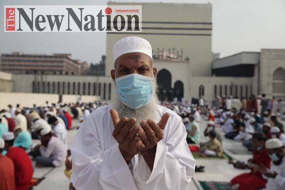 সকাল সাড়ে ৭টার কিছু আগে শুরু হয় মোনাজাত। ১০ মিনিটব্যাপী চলা মোনাজাতে বাংলাদেশসহ বিশ্ববাসীকে করোনা থেকে মুক্তি পেতে আল্লাহর কাছে দোয়া প্রার্থনা করেন। আল্লাহর কাছে দু’হাত তুলে দোয়া করেন ছোট-বড় সব বয়সী মুসল্লিরা।