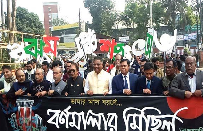 বর্ণমালার মিছিলের মধ্যে দিয়ে সিলেটে ভাষার মাস বরণ