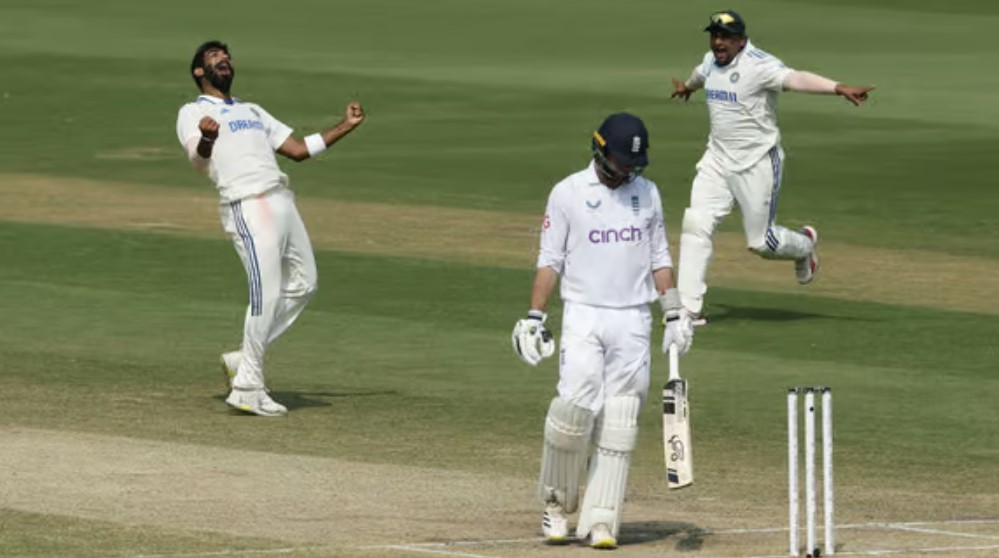 আগের দিন দুই দফায় আঙুলে চোট পাওয়া জো রুট টিকতে পারেননি বেশিক্ষণ। টি-টোয়েন্টি ঘরানার ব্যাটিংয়ে বিদায় নেন ১০ বলে ১৬ রান করে; অশ্বিনের বলে স্লগ করে ছক্কার চেষ্টায় একদমই টাইমিং করতে পারেননি, ব্যাটের কানায় লেগে বল যায় ব্যাকওয়ার্ড পয়েন্টে! এক প্রান্ত আগলে রাখা জ্যাক ক্রলিকে এলবিডব্লিউ করে ফেরান কুলদিপ ইয়াদাভ। ১৩২ বলে আট চার ও এক ছক্কায় ৭৩ রান করেন ইংলিশ ওপেনার। পরের ওভারে জনি বেয়ারস্টোকে বিদায় করে ইংল্যান্ডকে আরেকটি ধাক্কা দেন বুমরাহ।