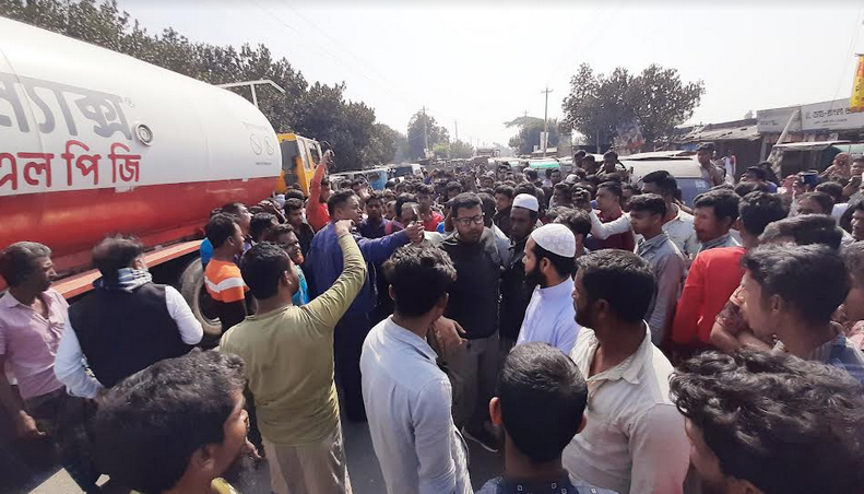 ঈশ্বরগঞ্জে চাঁদা বন্ধের দাবিতে মহাসড়ক অবরোধ