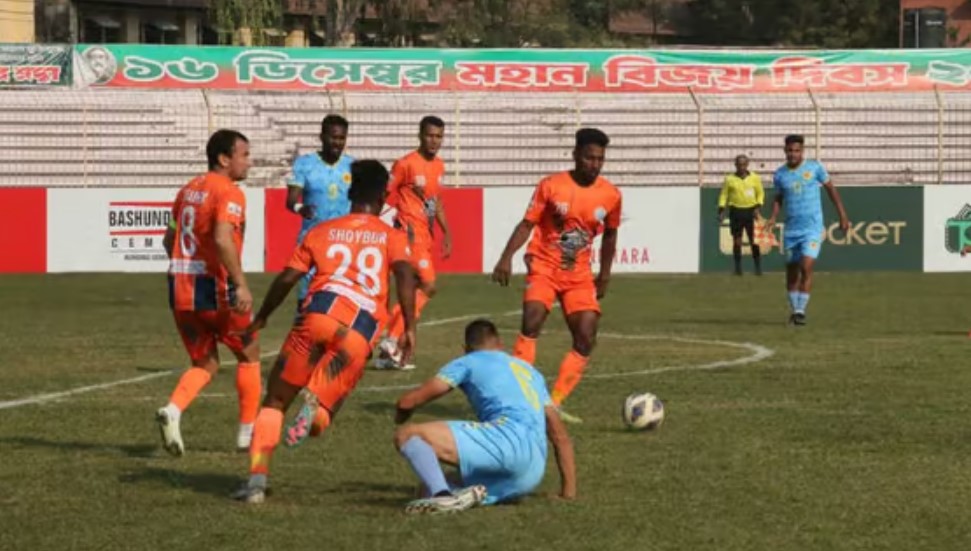 ম্যাচ জুড়ে ছড়ি ঘোরাল আবাহনী। ব্রাদার্সও হাল ছাড়ল না সহজে। তাতে জমে উঠল ম্যাচ। শেষ পর্যন্ত অবশ্য জয় তুলে নিল আবাহনী। প্রিমিয়ার লিগে দিনের অন্য ম্যাচে শুরুতে পিছিয়ে পড়া মোহামেডানকে চোখ রাঙাচ্ছিল হার। শেষ দিকে পেনাল্টি গোলে কোনো মতে হার এড়াল সাদাকালো জার্সিধারীরা। রাজশাহীর মুক্তিযুদ্ধ স্মৃতি স্টেডিয়ামে শুক্রবার ব্রাদার্সকে ৩-২ গোলে হারিয়েছে আবাহনী। মুন্সিগঞ্জের বীরশ্রেষ্ঠ ফ্লাইট লে. মতিউর রহমান স্টেডিয়ামে রহমতগঞ্জ মুসলিম ফ্রেন্ডস অ্যান্ড সোসাইটির বিপক্ষে ১-১ ড্র করেছে মোহামেডান। রাজশাহীদে সপ্তম মিনিটেই এগিয়ে যায় আবাহনী। সতীর্থের লংস পাস অফসাইডের ফাঁদ ভেঙে নিয়ন্ত্রণে নিয়ে ছুট যান কর্নেলিয়াস স্টুয়ার্ট।