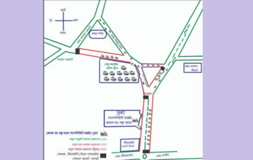 আমতল, তিনপুল ও সিনেমা প্যালেস মোড়ে রোড ব্লক স্থাপন করে যানবাহন ডাইভারশন দেওয়া হবে।