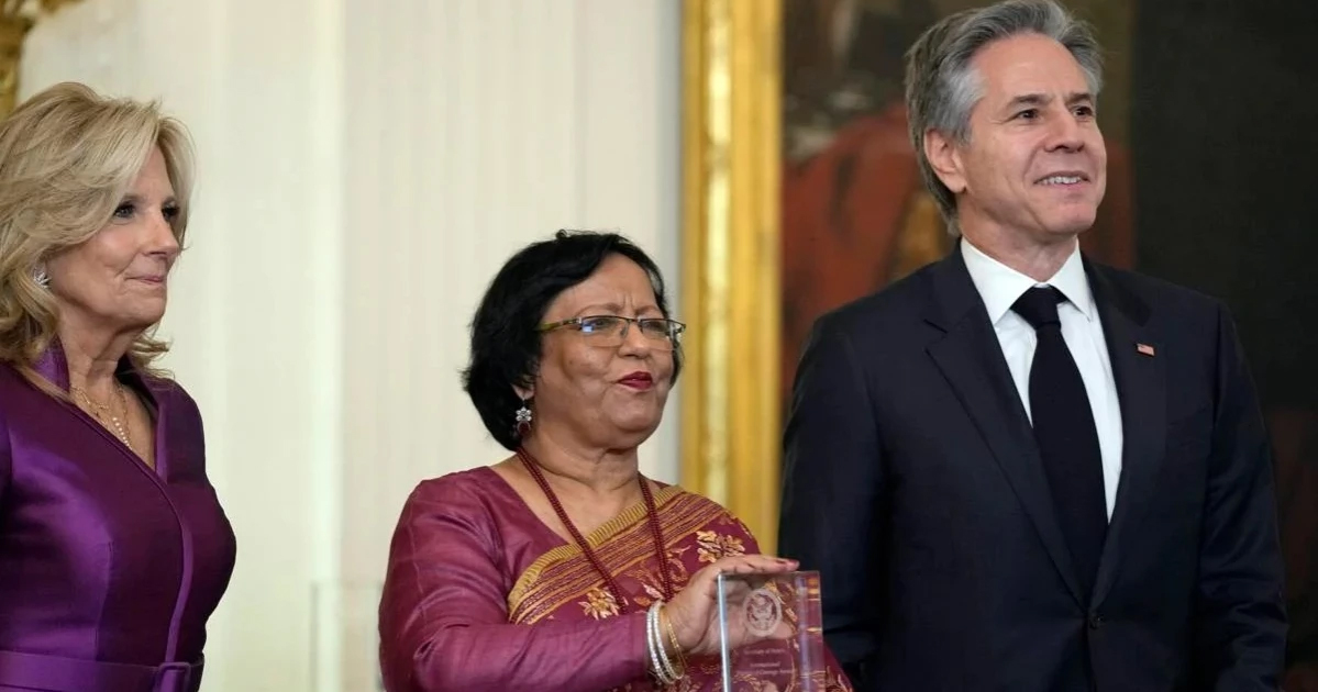 মার্কিন পররাষ্ট্রমন্ত্রী অ্যান্টনি জে ব্লিঙ্কেন এবং ফার্স্ট লেডি জিল বাইডেন ৪ মার্চ (মার্কিন সময়) হোয়াইট হাউসে বার্ষিক আন্তর্জাতিক সাহসী নারী পুরস্কার প্রদান অনুষ্ঠানের আয়োজন করেন।