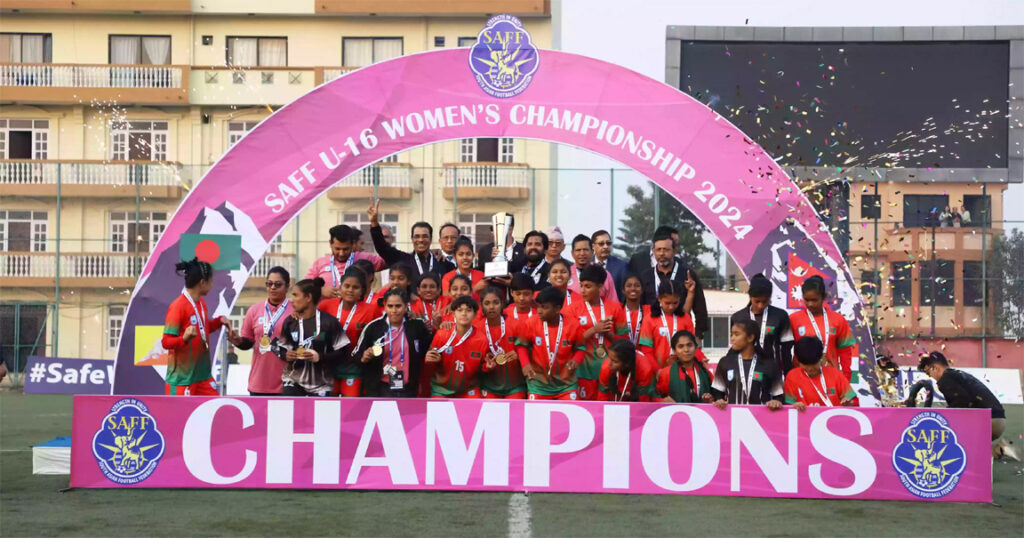 সাফ অনূর্ধ্ব-১৬ নারী চ্যাম্পিয়নশিপ ২০২৪-এর ফাইনালে টাই ব্রেকারে ভারতকে ৩-২ গোলে হারিয়ে বিজয়ী হয়েছে বাংলাদেশ।