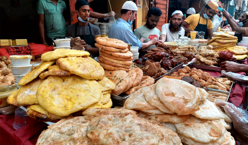 মুখরোচক ইফতারের বিভিন্ন পদ যেমন গ্রিল ৮০-১০০ টাকা, দুধ নান ৬০-১০০ টাকা, সবজি নান ৮০-৯০, পরোটা ৩০, কিমা পরোটা ৫০-৬০, গরুর মাংসের বিরিয়ানি ৩৫০-৪৫০ টাকা, আস্ত মুরগির রোস্ট ৩৫০-৪৫০, গরুর হালিম ২০০ থেকে শুরু করে ৮০০ টাকা, কোয়েল রোস্ট ১০০ টাকা, খাসির আস্ত পা রোস্ট ৮০০ টাকায় বিক্রি হচ্ছে।