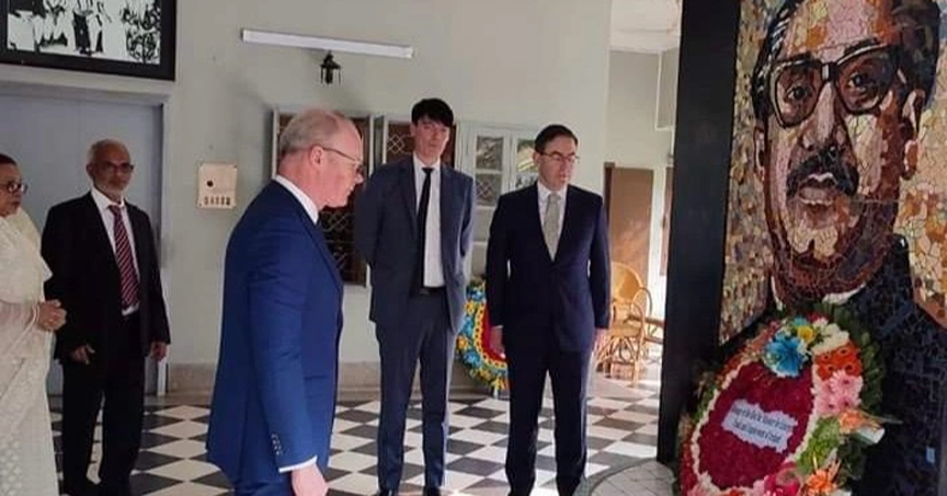 জাতির পিতার প্রতিকৃতিতে শ্রদ্ধা নিবেদন করলেন আয়ারল্যান্ডের মন্ত্রী সাইমন কোভেনি