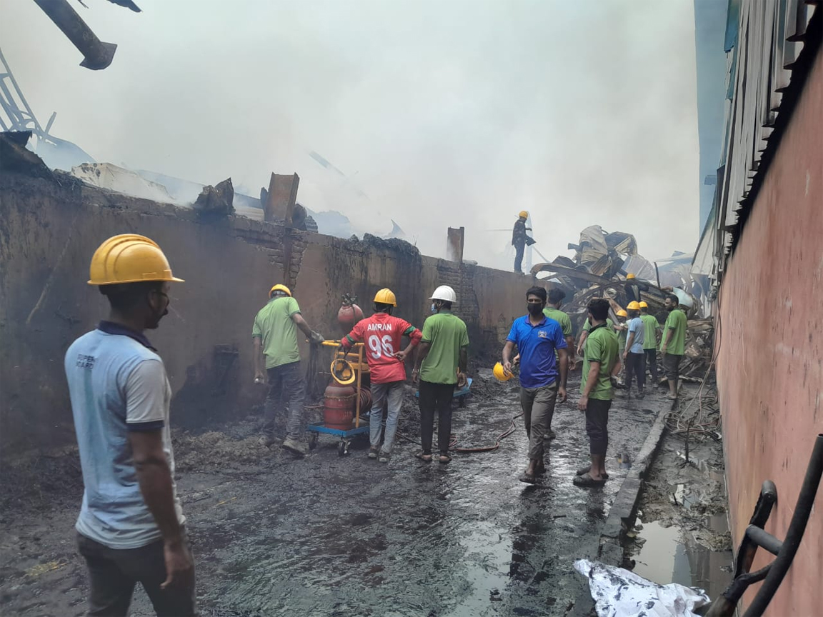 রবিবার দিবাগত রাত ১২টার দিকে আগুন কিছুটা নিয়ন্ত্রণে এলেও পুরোপুরি নিয়ন্ত্রণে আসে সোমবার বেলা ১১টায়।