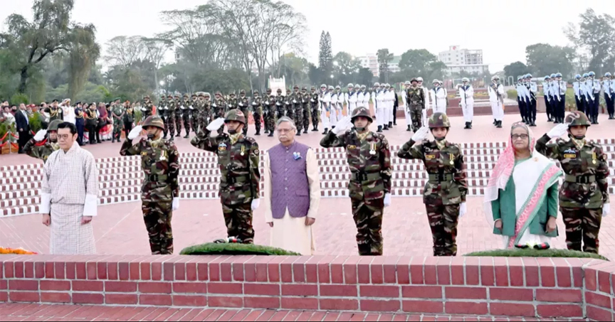 রাষ্ট্রপতি মোঃ সাহাবুদ্দিন, প্রধানমন্ত্রী শেখ হাসিনা ও ভুটানের রাজা জিগমে খেসার নামগিয়েল ওয়াংচুক মুক্তিযুদ্ধে শহীদদের প্রতি শ্রদ্ধা জানিয়েছেন।