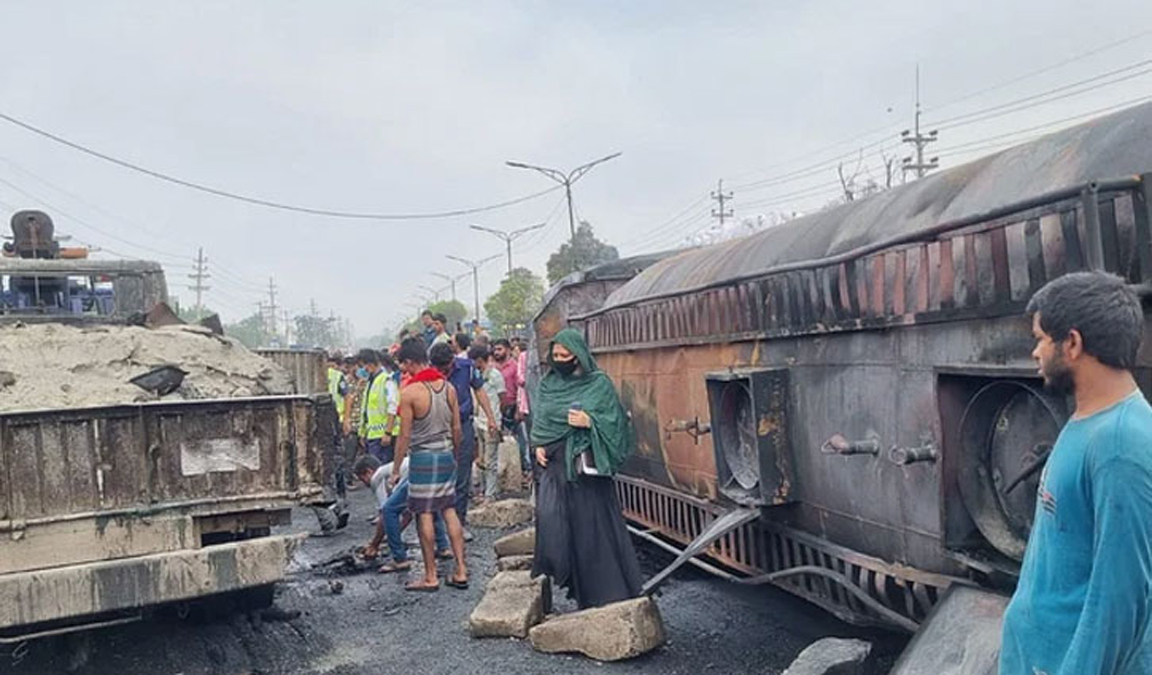 সাভারে তেলবাহী ট্যাংকার উল্টে আগুন লেগে নিহত ১, আহত ৮