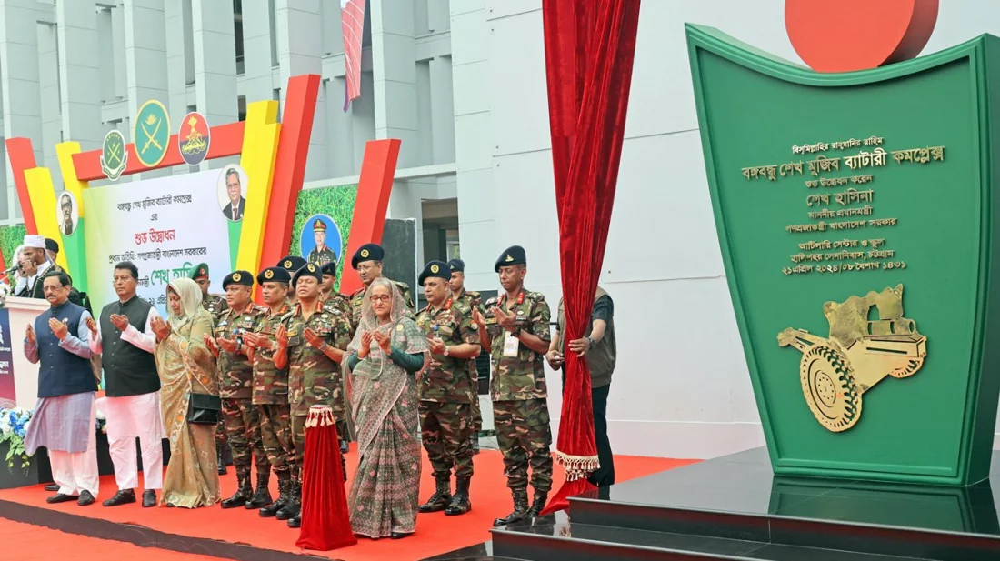 চট্টগ্রামের হালিশহর সেনানিবাসে নবনির্মিত ‘বঙ্গবন্ধু শেখ মুজিব ব্যাটারি কমপ্লেক্স’ উদ্বোধন করেছেন প্রধানমন্ত্রী শেখ হাসিনা।