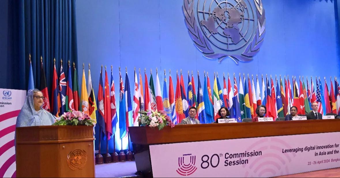 প্রধানমন্ত্রী শেখ হাসিনা থাইল্যান্ডের রাজধানী ব্যাংককে জাতিসংঘ সম্মেলন কেন্দ্রের এসকাপ হলে (৩য় তলা) জাতিসংঘের এশিয়া ও প্রশান্ত মহাসাগরীয় অঞ্চলের অর্থনৈতিক ও সামাজিক কমিশনের (ইউএনএসকাপ) ৮০তম অধিবেশনে প্রদত্ত ভাষণে একথা বলেন।