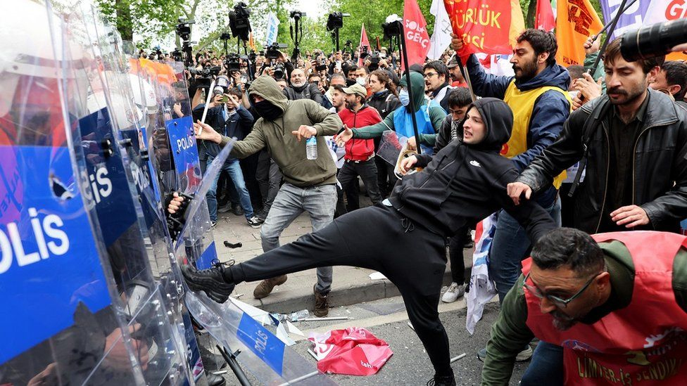 তুরস্কের ইস্তাম্বুলে মে দিবসের দিন বিশাল প্রতিবাদ বিক্ষোভকারীরা। পরিস্থিতি নিয়ন্ত্রণে আনতে গ্যাস, রবার বুলেট ব্যবহার করেছে দেশটির পুলিশ। গ্রেপ্তার করেছে অন্তত দুইশ মানুষকে। এদিন ইস্তাম্বুলের অনেক রাস্তাই বন্ধ করে দিয়েছিল পুলিশ। খবর ডয়চেভেলে’র। দেশটির স্বরাষ্ট্রমন্ত্রী আলী ইয়েলিকায়া জানিয়েছেন, শহরে ৪২ হাজারেরও বেশি পুলিশ মোতায়েন করা হয়েছিল। শহরের ঐতিহাসিক তাসকিম স্কয়ার থেকে পুলিশ দুইশরও বেশি বিক্ষোভকারীকে গ্রেপ্তার করে।