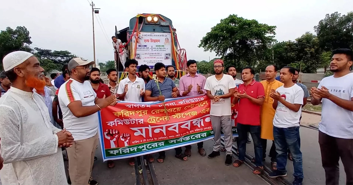 স্টপেজের দাবিতে ফরিদপুরে প্রথম দিনই ট্রেনের গতিরোধ