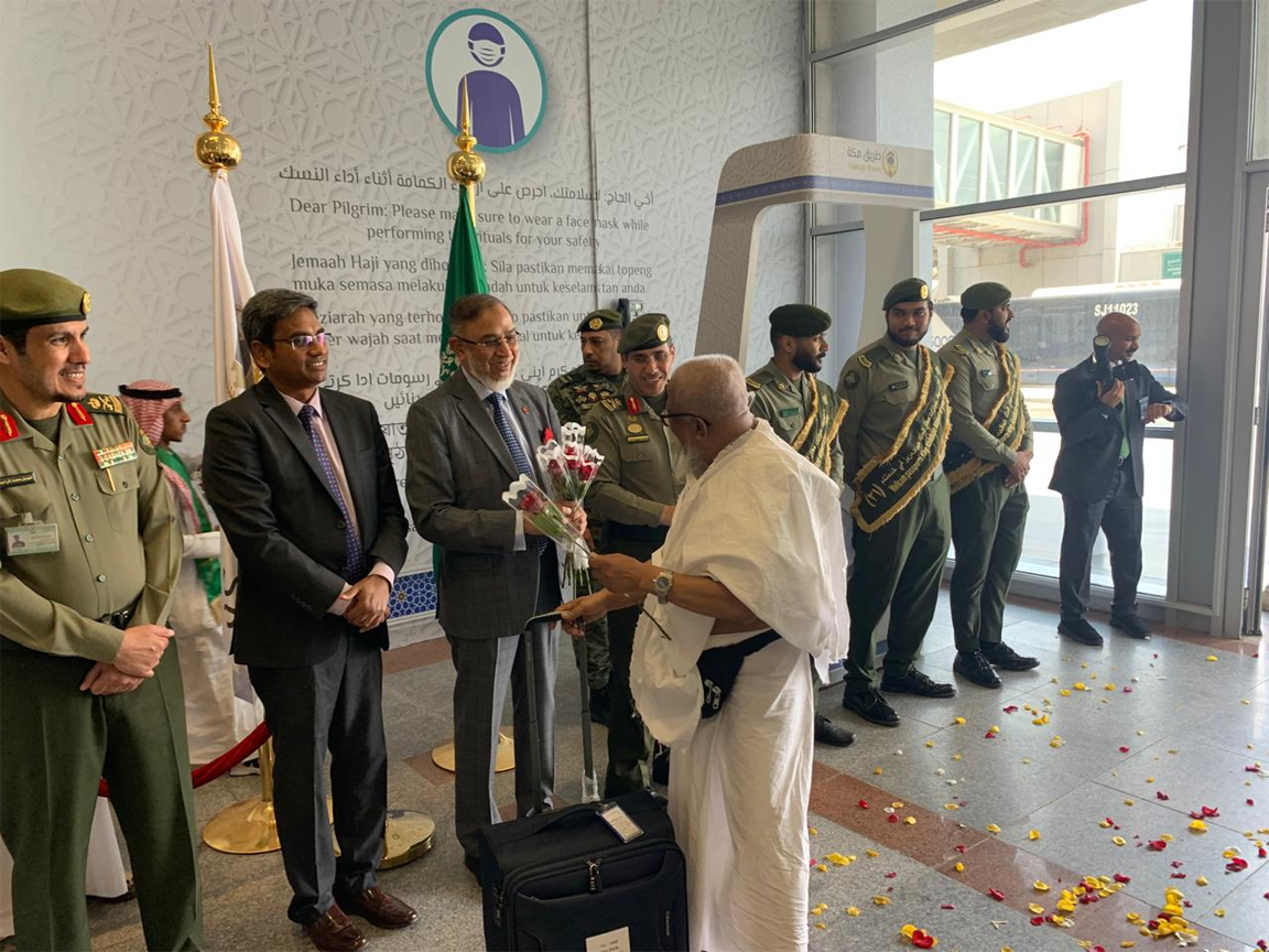 বিমানবন্দরে বাংলাদেশি হজযাত্রীদের স্বাগত জানান সৌদি আরবে নিযুক্ত বাংলাদেশের রাষ্ট্রদূত ড. মোহাম্মদ জাবেদ পাটোয়ারী।