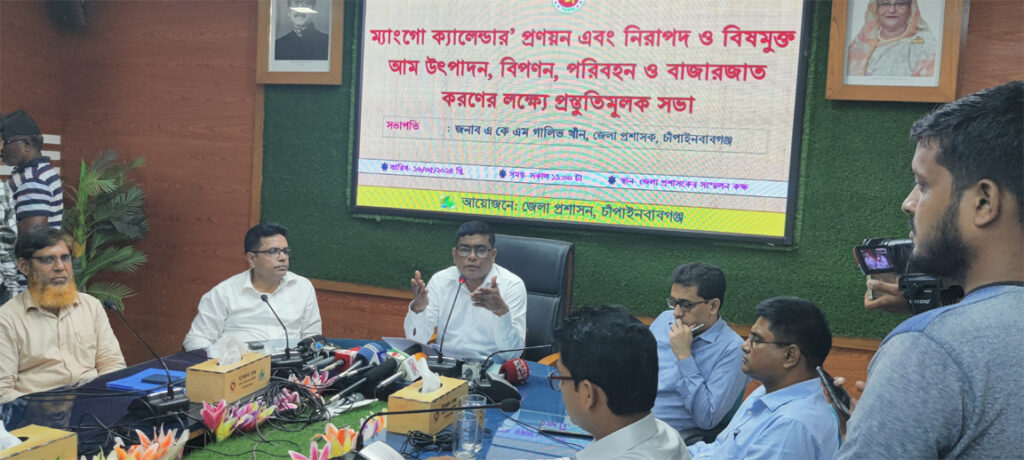 বৃহস্পতিবার সকালে জেলা প্রশাসনের আয়োজনে জেলা প্রশাসকের কার্যালয়ের সম্মেলনকক্ষে ম্যাংগো ক্যালেন্ডার প্রণয়ন, নিরাপদ ও বিষমুক্ত আম উৎপাদন, বিপণন ও বাজারজাতকরণের লক্ষ্যে অনুষ্ঠিত এক সভায় এ তথ্য জানানো হয়েছে।