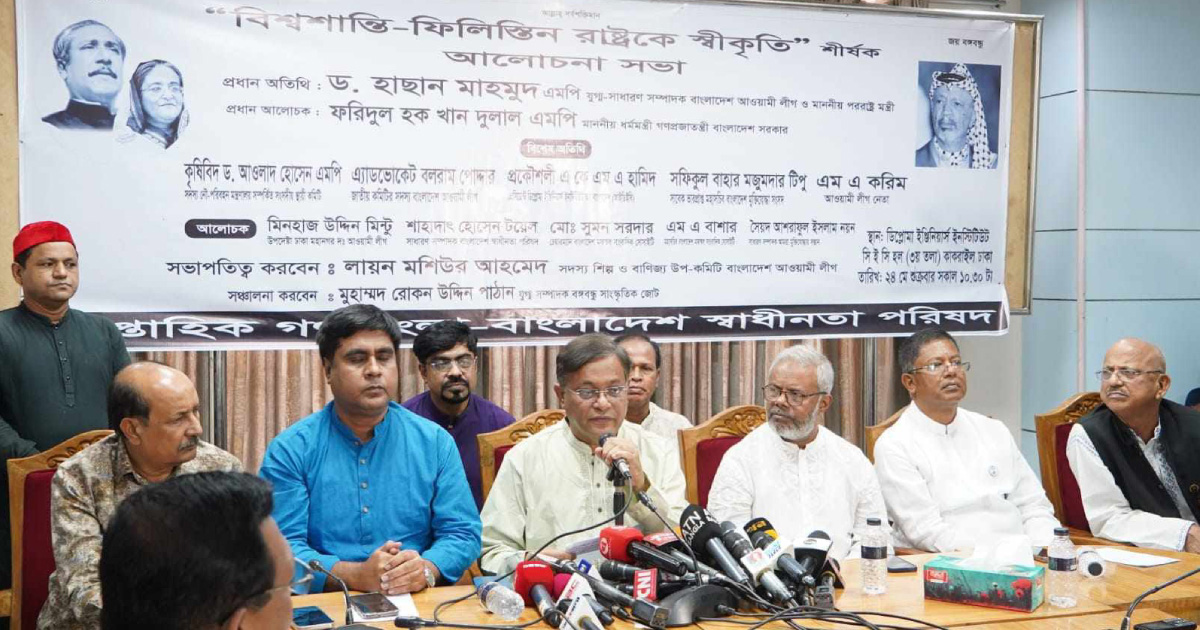 শুক্রবার (২৪ মে) দুপুরে রাজধানীর ডিপ্লোমা ইঞ্জিনিয়ার্স ইনস্টিটিউটে বাংলাদেশ স্বাধীনতা পরিষদ ও সাপ্তাহিক গণবাংলা আয়োজিত ‘বিশ্বশান্তি ও ফিলিস্তিন রাষ্ট্রের প্রতি স্বীকৃতি’ শীর্ষক আলোচনা সভায় প্রধান অতিথির বক্তব্যে তিনি এ কথা বলেন।