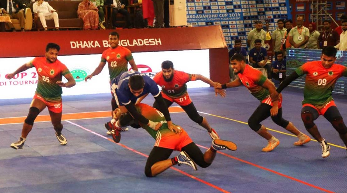 শ্বাসরুদ্ধকর টাইব্রেকারে জিতে ফাইনালে আসা নেপাল পারল না বাংলাদেশকে তেমন চ্যালেঞ্জ জানাতে। দ্বিতীয়ার্ধে তারা ঘুরে দাঁড়াতে চেষ্টা করল বটে, কিন্তু টুর্নামেন্ট জুড়ে দাপুটে বাংলাদেশকে আটকানোর জন্য তা যথেষ্ট হলো না। বঙ্গবন্ধু কাপ ইন্টারন্যাশনাল কাবাডিতে টানা চতুর্থ শিরোপা জিতল স্বাগতিকরা। মিরপুরের শহীদ সোহরাওয়ার্দী ইনডোর স্টেডিয়ামে সোমবার নেপালকে ৪৫-৩১ পয়েন্টে হারিয়ে অপরাজিত চ্যাম্পিয়ন হয় বাংলাদেশ। প্রথমার্ধে স্বাগতিকরা এগিয়ে ছিল ২৪-১০ পয়েন্টে।