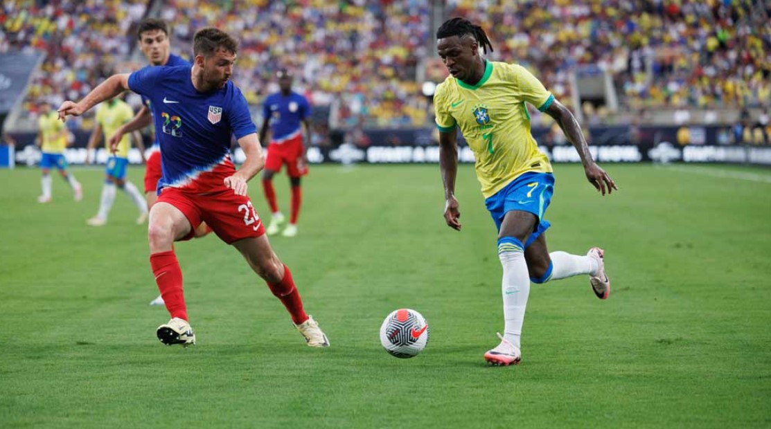 রদ্রিগোর গোলে শুরুতেই এগিয়ে যাওয়ার পর আক্রমণের তোড়ে যুক্তরাষ্ট্রকে ভাসিয়ে দিতে চাইল ব্রাজিল। কিন্তু গোলরক্ষক ম্যাট টার্নার যেন হয়ে উঠলেন চীনের প্রাচীর। চমৎকার ফুটবল উপহার দিলেও জয় পাওয়া হলো না দরিভাল জুনিয়রের দলের। কোপা আমেরিকার আগে নিজেদের সবশেষ প্রীতি ম্যাচে ড্র করল ব্রাজিল। বাংলাদেশ সময় বৃহস্পতিবার ভোরে শুরু হওয়া ম্যাচে ১৭তম মিনিটে ব্রাজিলকে এগিয়ে নেন রদ্রিগো। ২৬তম মিনিটে গোল শোধ করেন ক্রিস্টিয়ান পুলিসিক। ম্যাচ শেষ হয় ১-১ সমতায়। যুক্তরাষ্ট্রের বিপক্ষে ২০ ম্যাচে এটাই ব্রাজিলের প্রথম ড্র। হার কেবল একটি, ১৯৯৮ সালে। বাকি ১৮ ম্যাচেই জিতেছে পাঁচবারের বিশ্ব চ্যাম্পিয়নরা টার্নারের ১১ সেভের সৌজন্য আরেকটি হার এড়িয়েছে যুক্তরাষ্ট্র।