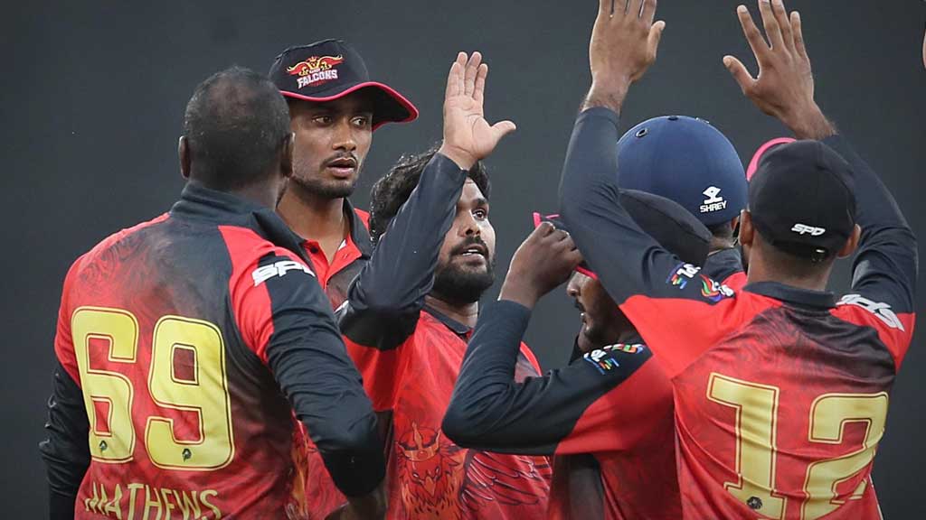 রান তাড়ায় প্রথম ১৩ বলে ১৩ রান তুলতে ৩ উইকেট হারায় জাফনা। এরপর চারিথ আসালাঙ্কা ও আভিশকা ফার্নান্দোর কয়েকটি ছক্কায় ম্যাচে ফেরে তারা। শেষ ৩ ওভারে দরকার ছিল ৩১ রান। পঞ্চম ওভারে হাসারাঙ্গার প্রথম বলে আরেকটি ছক্কা মারেন আসালাঙ্কা। পরের তিন বলে কোনো রান না দিয়ে আসালাঙ্কা (৯ বলে ২৬) ও লহিরু সামারাকুনকে ফেরান হাসারাঙ্গা। এই লেগ স্পিনারের শেষ দুই বলে আবার দুটি ছক্কা মারেন আজমাতউল্লাহ ওমারজাই।