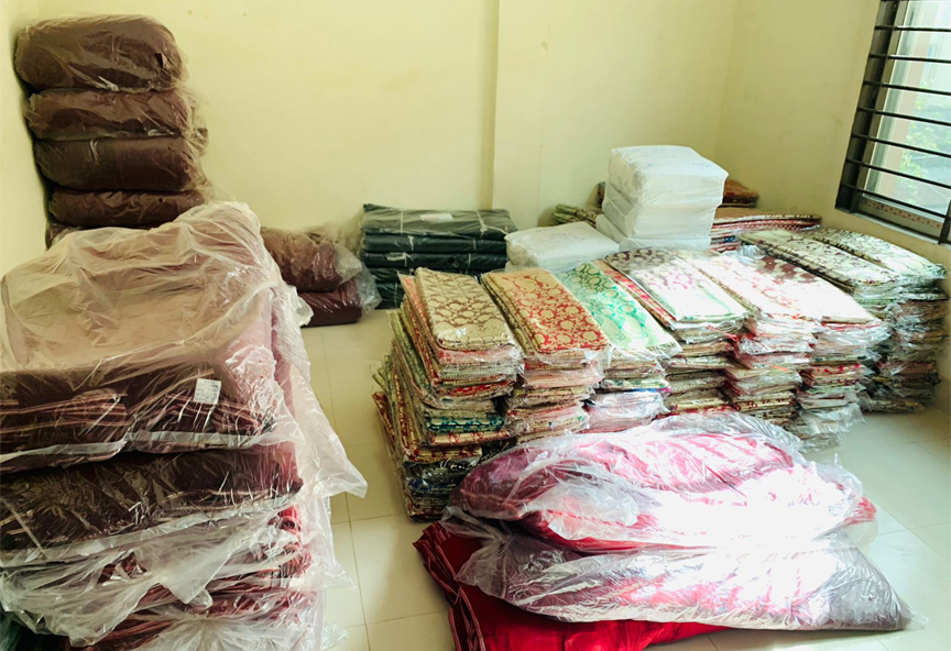জব্দ করা শাড়িগুলোর বাজার মূল্য ২৪ লাখ ২০ হাজার টাকা।