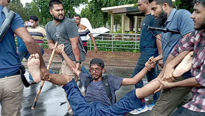 পরে শিক্ষার্থীদের চিৎকারে সেখানে শিক্ষকরা উপস্থিত হয়ে ছাত্রদের ছাড়িয়ে নেওয়ার চেষ্টা করেন। এতে শিক্ষক ও শিক্ষার্থীদের সঙ্গে সাদা পোশাকের পুলিশের ব্যাপক ধস্তাধস্তি শুরু হয়। এক পর্যায়ে বিশ্ববিদ্যালয় প্রশাসন ও শিক্ষকদের হস্তক্ষেপে তাদের ছেড়ে দিতে বাধ্য হয় পুলিশ।