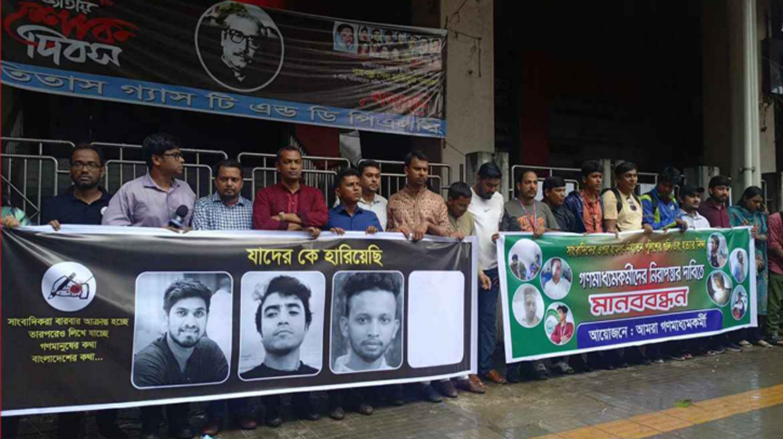 এ সময় মানববন্ধনে অংশ নেওয়া আহত সাংবাদিকরা নিজেদের অভিজ্ঞতা তুলে ধরেন।