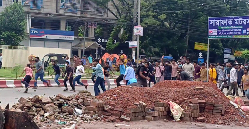 এসময় বিক্ষোভকারীরা পুলিশকে লক্ষ্য করে ইট-পাটকেল ছোড়া শুরু করলে পুলিশও পাল্টা টিয়ার শেল, সাউন্ড গ্রেনেড নিক্ষেপ করে তাদের ছত্রভঙ্গ করে।