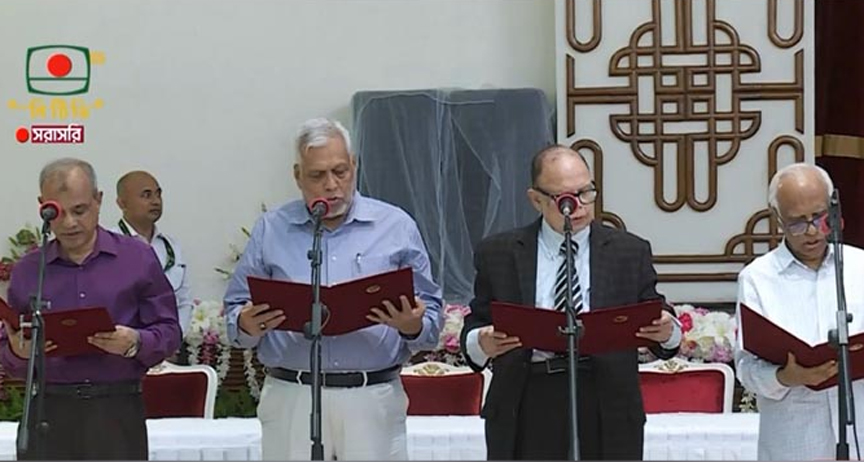 বঙ্গভবনে নতুন উপদেষ্টাদের শপথবাক্য পাঠ করান রাষ্ট্রপতি মোঃ সাহাবুদ্দিন।