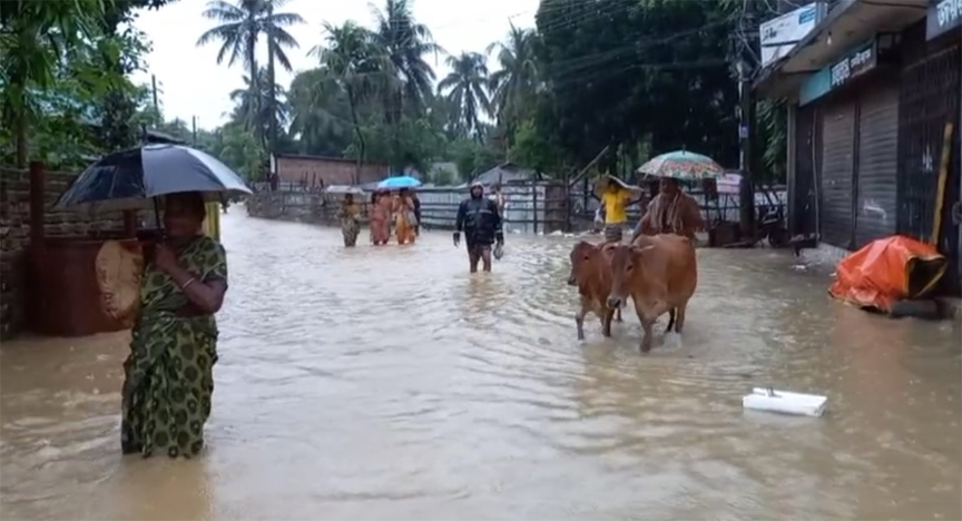 গঞ্জপাড়া, অপর্ণা চৌধুরী পাড়া, রাজ্যমনি পাড়া, কালাডেবা, বটতলী, ফুটবিল এলাকার নিচু এলাকায় পানি উঠেছে।