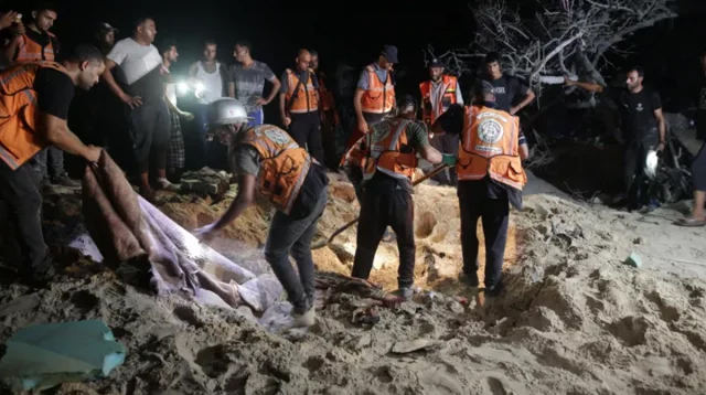হামাসের সিভিল ডিফেন্স অথরিটির অপারেশন ডিরেক্টর বলেছে, হামলায় অন্তত ৪০ জন নিহত হয়েছে। আহত হয়েছে ৬০ জনের বেশি। সেইসঙ্গে এখনো অনেকে ধ্বংসাবশেষের নিচে আটকা পড়ে আছে। প্রত্যক্ষদর্শীরা বিবিসিকে বলেছেন, মধ্যরাতের পরে আল-মাওয়াসি এলাকায় বিশাল বিস্ফোরণ হয়। তবে ইসরায়েলের প্রতিরক্ষা বাহিনীর (আইডিএফ) একজন মুখপাত্র বলেছেন, সন্ত্রাসী সংগঠন হামাসের মূল সন্ত্রাসীদের যারা খান ইউনিসের মানবিক এলাকায় ছদ্মবেশে একটি কমান্ড অ্যান্ড কন্ট্রোল কমপ্লেক্সে কাজ করছিল তাদের ওপর হামলা চালানো হয়েছে।