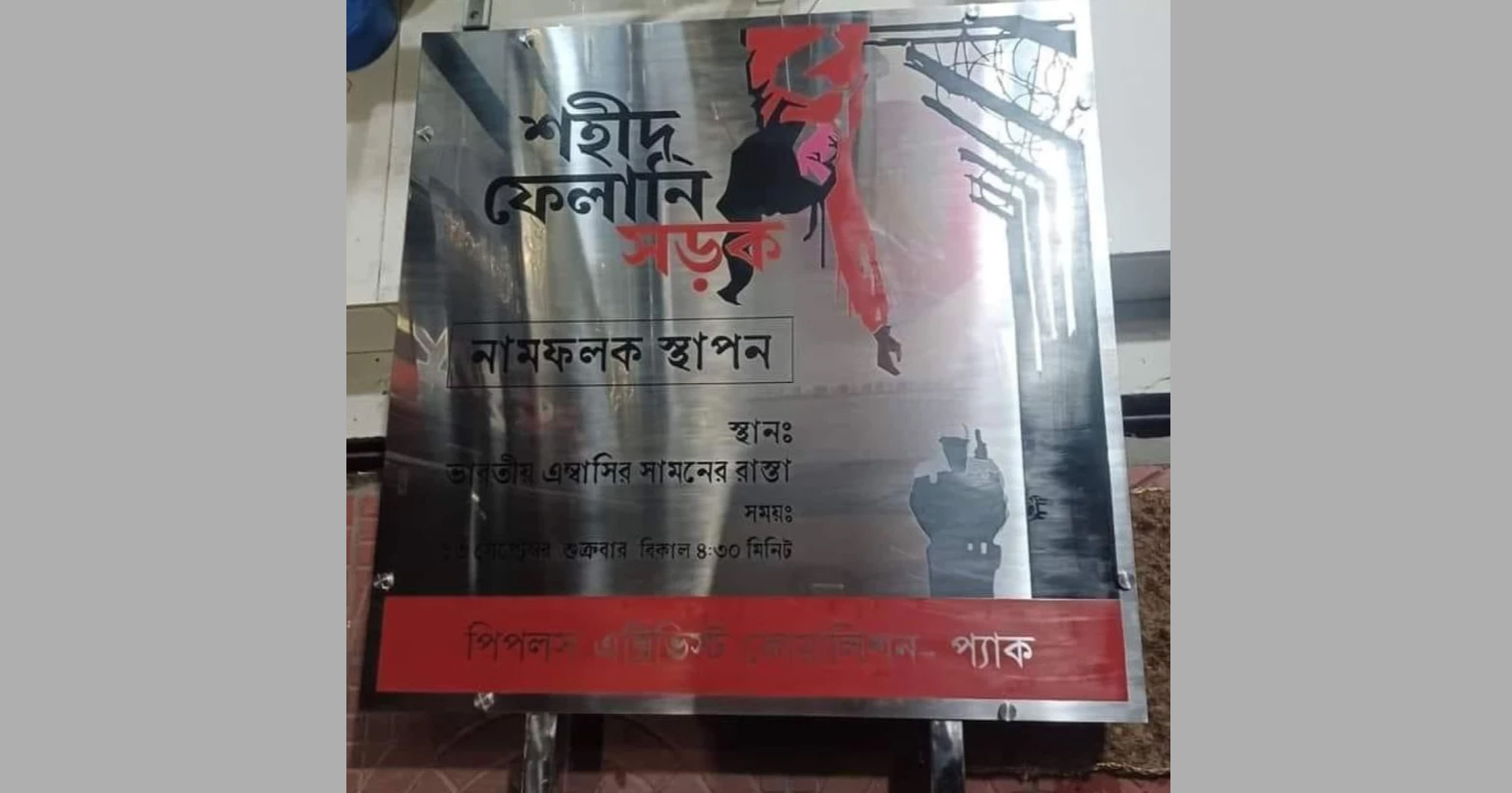 একপর্যায়ে সড়কে ‘শহীদ ফেলানি সড়ক’ লেখা একটি নেমপ্লেট বসানো হয়।