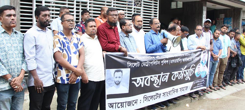 এসএমপি কমিশনার কার্যালয়ের সামনে সাংবাদিকদের অবস্থান কর্মসূচি