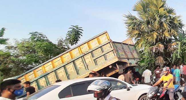 খুলনায় একটি বালুবাহী ট্রাকের ধাক্কায় চার সিএনজি যাত্রী নিহত হয়েছেন। শুক্রবার দুপুর ২টার দিকে খুলনা-সাতক্ষীরা মহাসড়কের পূর্ব জিলেরডাঙ্গা এলাকায় এই দুর্ঘটনা ঘটে। ট্রাক চালক রাকিব শেখকে আটক করেছে পুলিশ।
