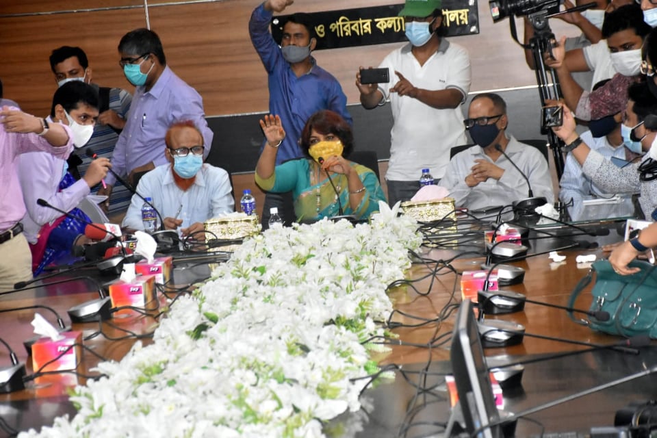 এর আগে স্বাস্থ্য মন্ত্রণালয়ের ডাকা সংবাদ সম্মেলন বর্জন করে বিএসআরএফ। বেলা ১১টা ২০ মিনিটে স্বাস্থ্য সেবা বিভাগের অতিরিক্ত সচিব ( বিশ্বস্বাস্থ্য অনুবিভাগ) কাজী জেবুন্নেছা বেগমের নেতৃত্বে মন্ত্রণালয়ের ৩ কর্মকর্তা সংবাদ সম্মেলন করতে আসেন। এসময় বাংলাদেশ সেক্রেটারিয়েট রিপোর্টার্স ফোরামের (বিএসআরএফ) সাধারণ সম্পাদক শামীম আহমেদ বলেন, রোজিনা ইসলামকে হেনস্তার প্রতিবাদে আমরা এ সংবাদ সম্মেলন বয়কট করলাম।