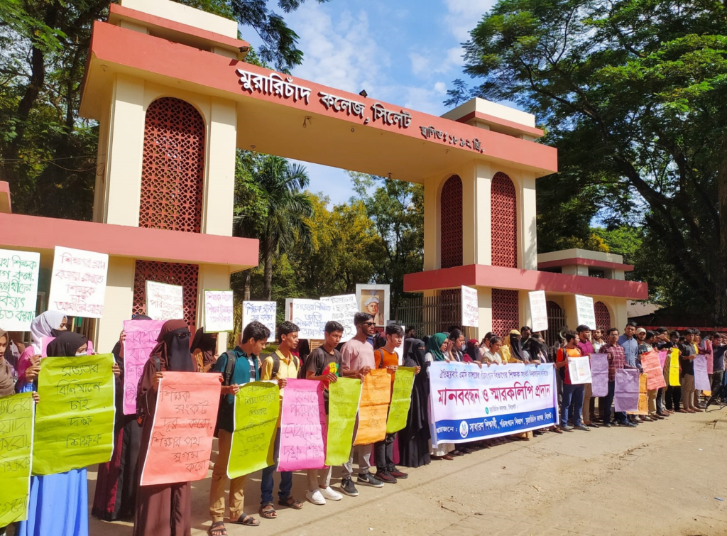 সিলেটের মুরারিচাঁদ (এমসি) কলেজের পরিসংখ্যান বিভাগের শিক্ষক সংকট নিরসনের দাবিতে মানববন্ধন করেছেন বিভাগের শিক্ষার্থীরা। বৃহস্পতিবার সকালে পরিসংখ্যান বিভাগ থেকে একটি র্যালী শুরু হয়ে পুরো কলেজ প্রদক্ষিণ করে কলেজের প্রধান ফটকে গিয়ে এই মানববন্ধন অনুষ্ঠিত হয়। পরে কলেজের অধ্যক্ষ বরাবরে তারা স্মারকলিপি প্রদান করেন।