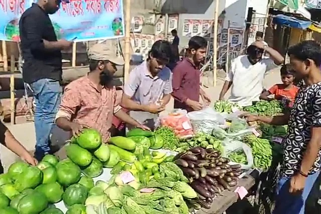 বিক্রয়ের দায়িত্বে থাকা মো. আল আমিন বলেন, ‘ফ্যাসিস্ট সরকারের দোসররা সিন্ডিকেট গড়ে তুলে বাজারকে অস্থিতিশীল করে তুলছে। বাজার সিন্ডিকেট ভাঙার অংশ হিসেবে আমরা বিনা লাভের বাজার কার্যক্রম শুরু করেছি। যে লাউ বাজারে ৮০ টাকায় বিক্রি করা হয়, সেই আকারের লাউ আমরা ৫০ টাকায় বিক্রি করছি। একইভাবে অন্যান্য পণ্য আমরা বাজারের তুলনায় কম দামে বিক্রি করছি। এতে মানুষ উপকৃত হচ্ছে।’