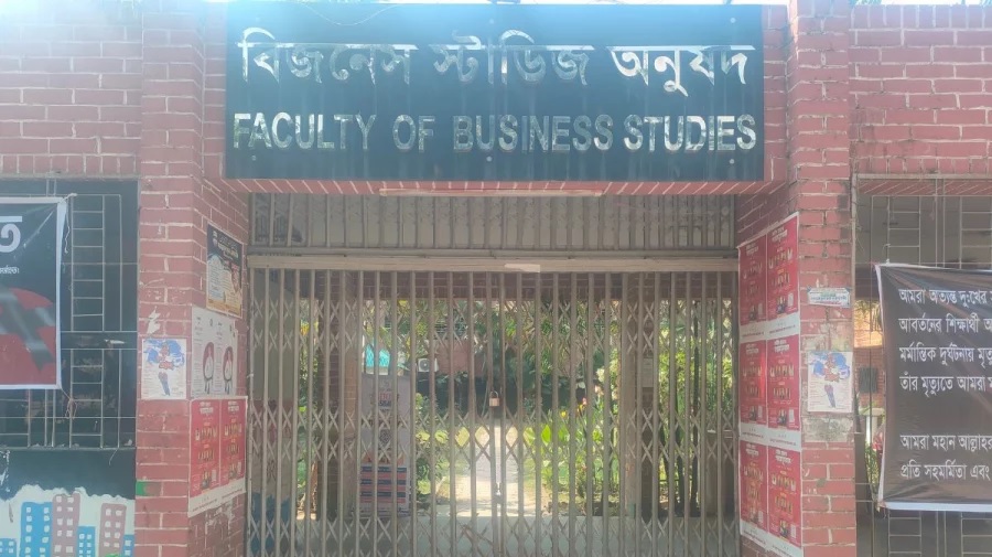 বৃহস্পতিবার (২১ নভেম্বর) সকাল সাড়ে ১১টায় বিজনেস স্টাডিজ অনুষদের সমানে অবস্থান নিয়ে ভবনের ফটকে তালা দেন শিক্ষার্থীরা। এরপর সেখান থেকে একটি বিক্ষোভ মিছিল বের করেন তারা। মিছিলটি বিশ্ববিদ্যালয়ের গুরুত্বপূর্ণ সড়ক ঘুরে নতুন প্রশাসনিক ভবনের সামনে গিয়ে শেষ হয়।