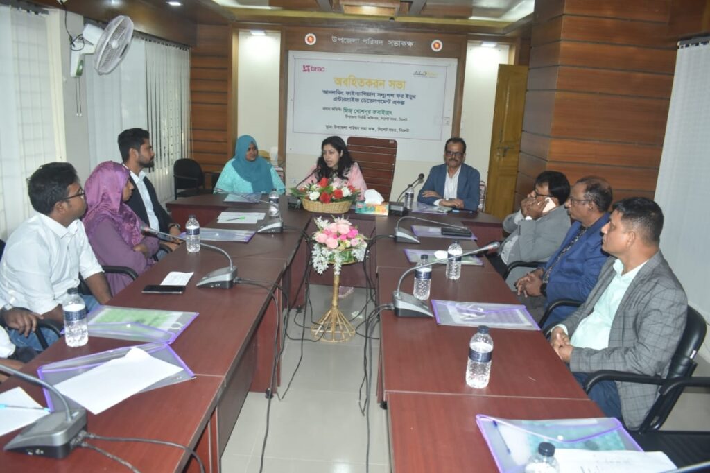 ব্র্যাকের এলাকা ব্যবস্থাপক আমেনা খাতুনের সভাপতিত্বে ও সেক্টর স্পেশালিষ্ট সোহেল রানা সবুজের উপস্থাপনায় অবহিতকরন সভায় মাল্টিমিডিয়ার মাধ্যমে প্রকল্প সম্পর্কে আলোচনা করেন জেলা ব্যবস্থাপক মোঃ গোলাম রসুল শিমুল।