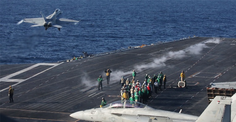 বিবৃতিতে বলা হয়েছে, বিমানবাহী রণতরী হ্যারি এস. ট্রুম্যান থেকে এফ/এ-১৮ হার্নেট যুদ্ধবিমানটি উড্ডয়ন করেছিল।