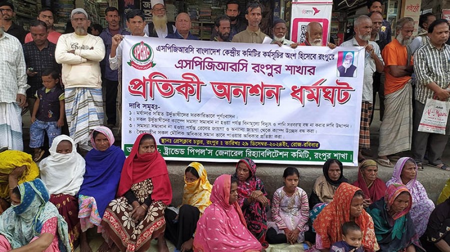 রংপুর ব্যুরো: ৪ দাবিতে প্রতীকী অনশন কর্মসূচি পালন করেছে বাংলাদেশে থাকা উর্দুভাষীরা । গতকাল রবিবার সকাল ৯টা থেকে দুপুর ১টা পর্যন্ত অনশন কর্মসূচিতে শতাধিক নারী পুরুষ ও শিশু উর্দুভাষীরা এতে অংশ নেন।অনশন কর্মসূচি চলাকালে বক্তব্য দেন এসপিজিআরসি রংপুর শাখার সভাপতি শরফুদ্দিন, যুগ্ম সাধারণ সম্পাদক খুরশীদ আলমসহ অন্য নেতৃবৃন্দ।