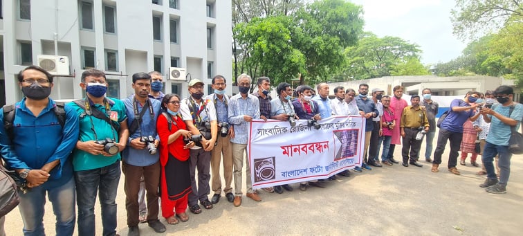 প্রথম আলোর জ্যেষ্ঠ প্রতিবেদক রোজিনা ইসলামের মুক্তি ও দোষী ব্যক্তিদের শাস্তির দাবিতে বুধবার জাতীয় প্রেসক্লাবে মানব বন্ধন করে বিএফইউজেএ, বাংলাদেশ ফটো জার্নালিস্ট এসোসিয়েশন সহ বিভিন্ন সাংবাদিক সংগঠন।